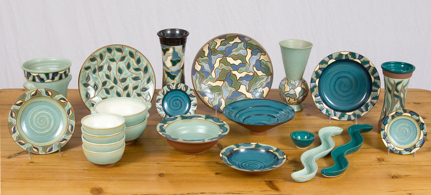 Welcome to Skyline Ceramics, featuring functional yet highly decorative wheel-thrown hand-crafted pottery by northern California artist Ruth Jacobson.